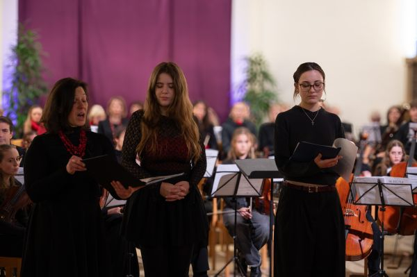 Nach der Pause, in der der Elternverein zu Knabbereien und Getränken lud, folgten Rezitative, Arien und Chorstücke aus Heinrich Schütz „Weihnachtshistorie“, vorgetragen von Schülerinnen der Gesangsklasse, Lehrerin Christine del’Antonio und dem Barockkonzertchor, unterstützt von SängerInnen des Vocal Ensemble Tulln und dem MusikschulSymphonieOrchester, Gesamtleitung Juan Pablo Simón.